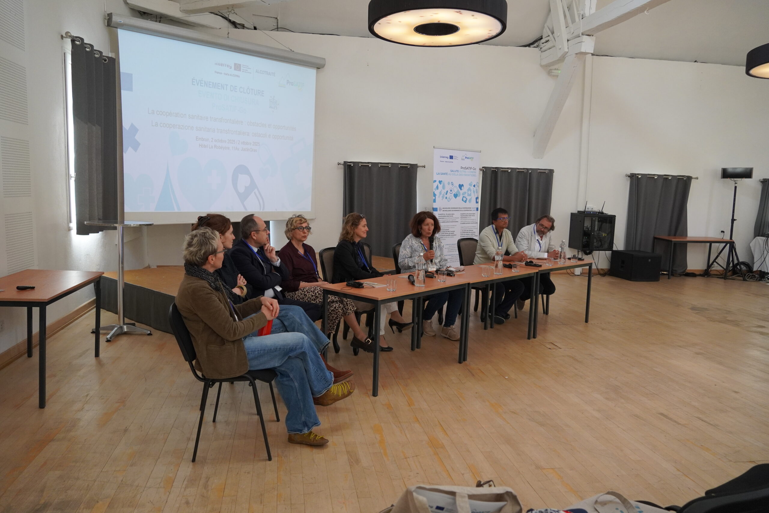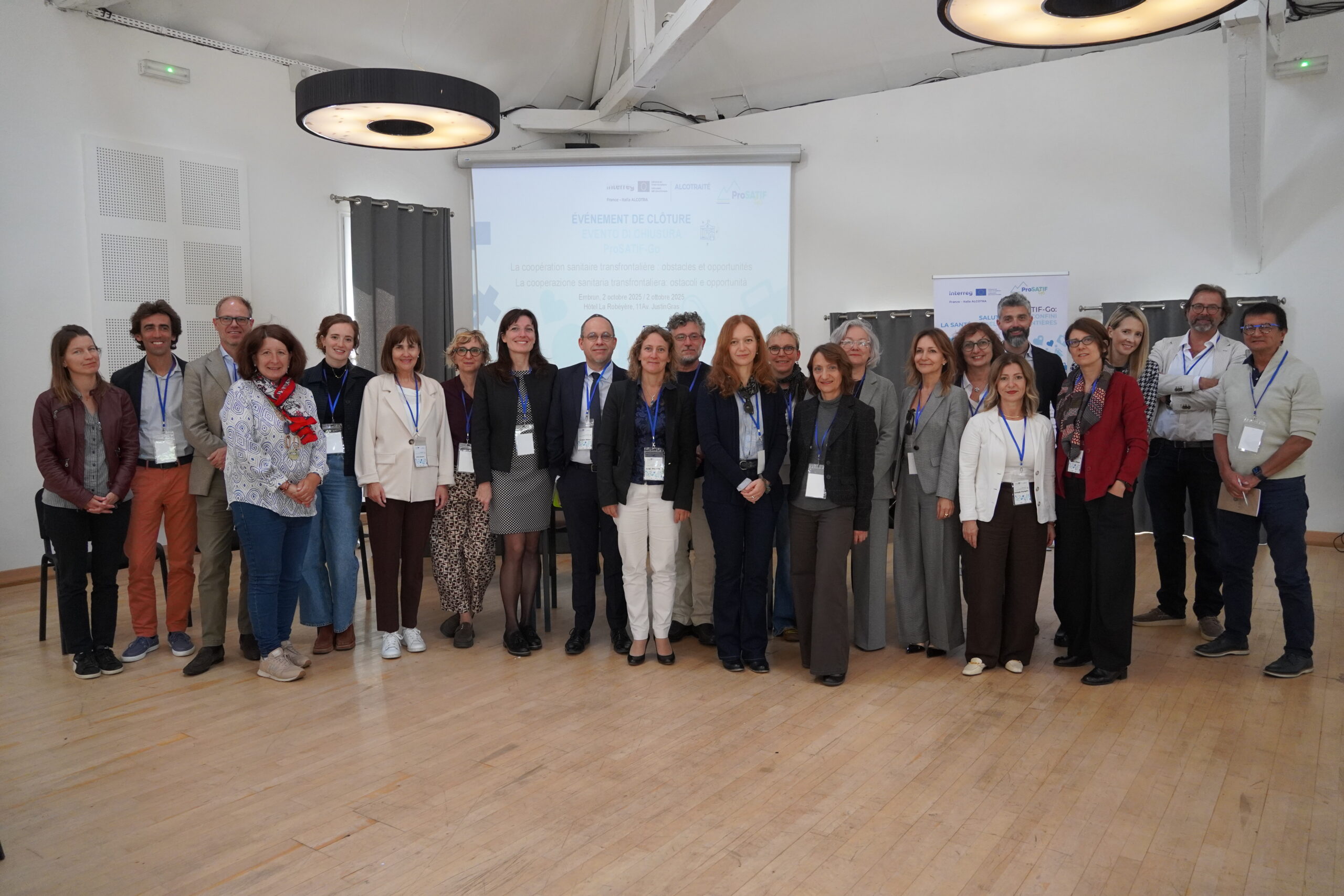 Si è svolto giovedì 2 ottobre 2025 a Embrun, in Francia, presso la sala conferenze dell’Hôtel La Robéyère, l’evento dal titolo “La cooperazione sanitaria transfrontaliera: ostacoli e opportunità” organizzato per divulgare i risultati dei progetti “ProSATIF-Go – Pro salute alpina transfrontaliera Italia Francia – Governance” e “Alcotraité”, finanziati dal Programma Interreg Italia-Francia Alcotra 2021-2027.